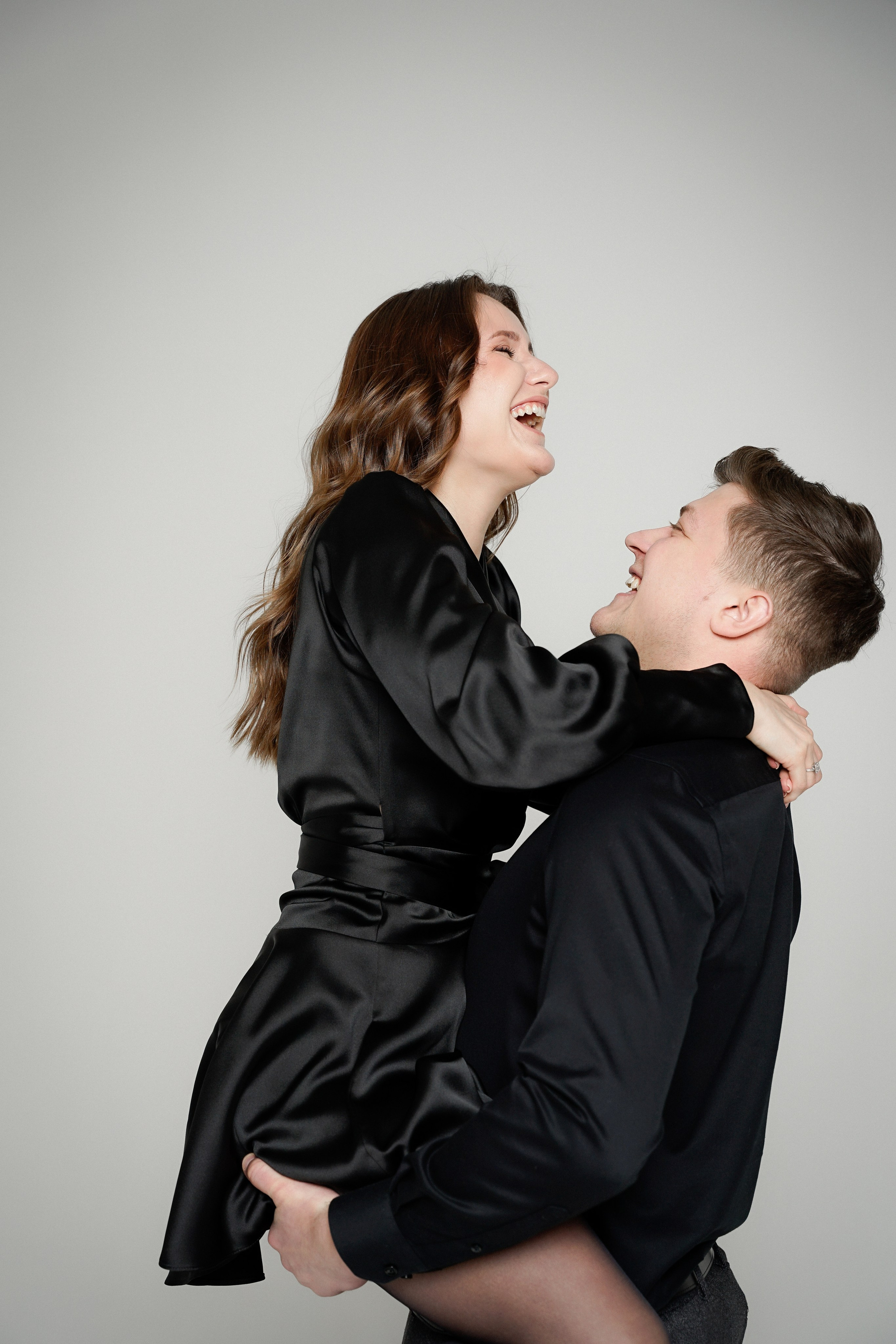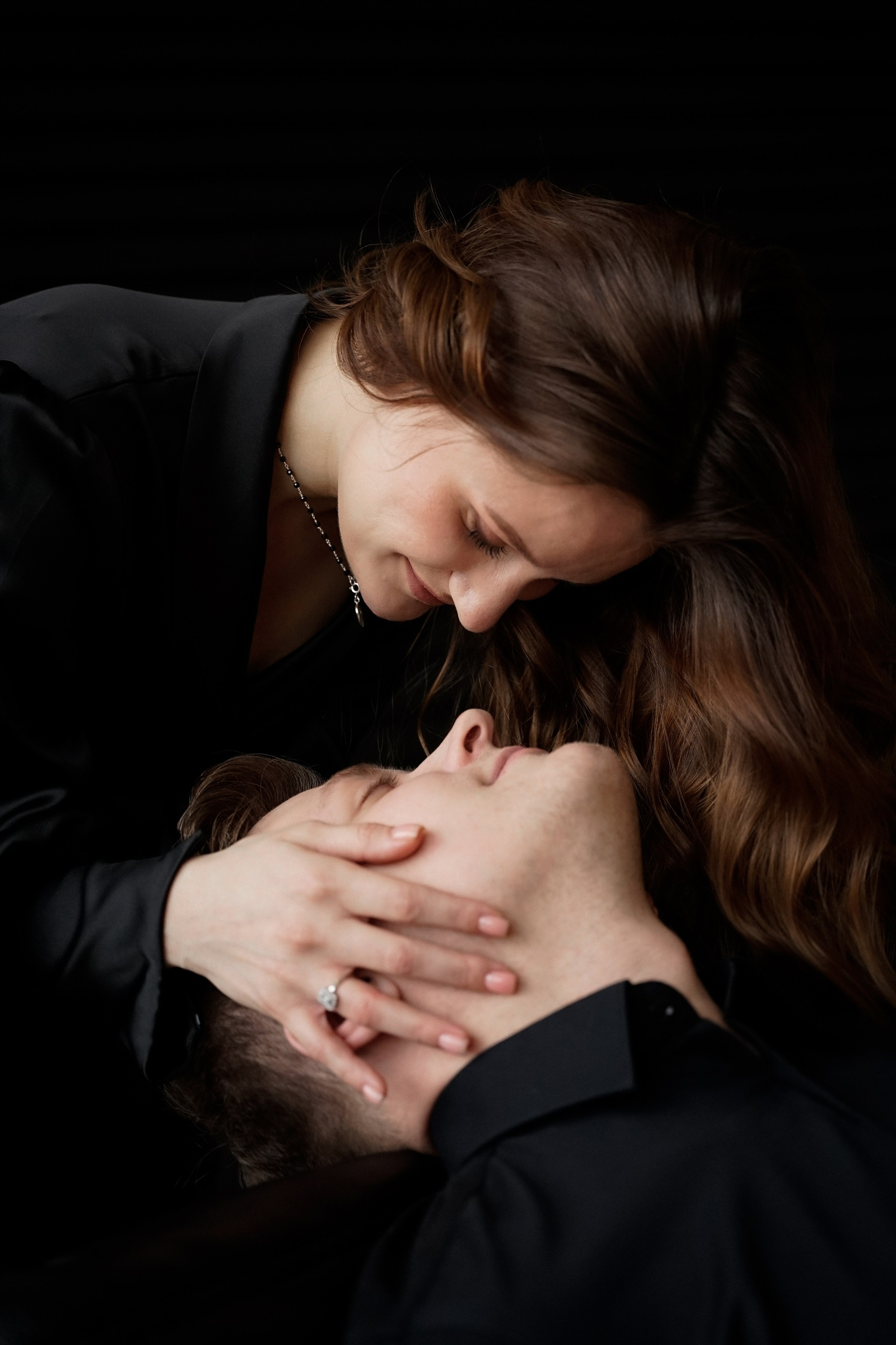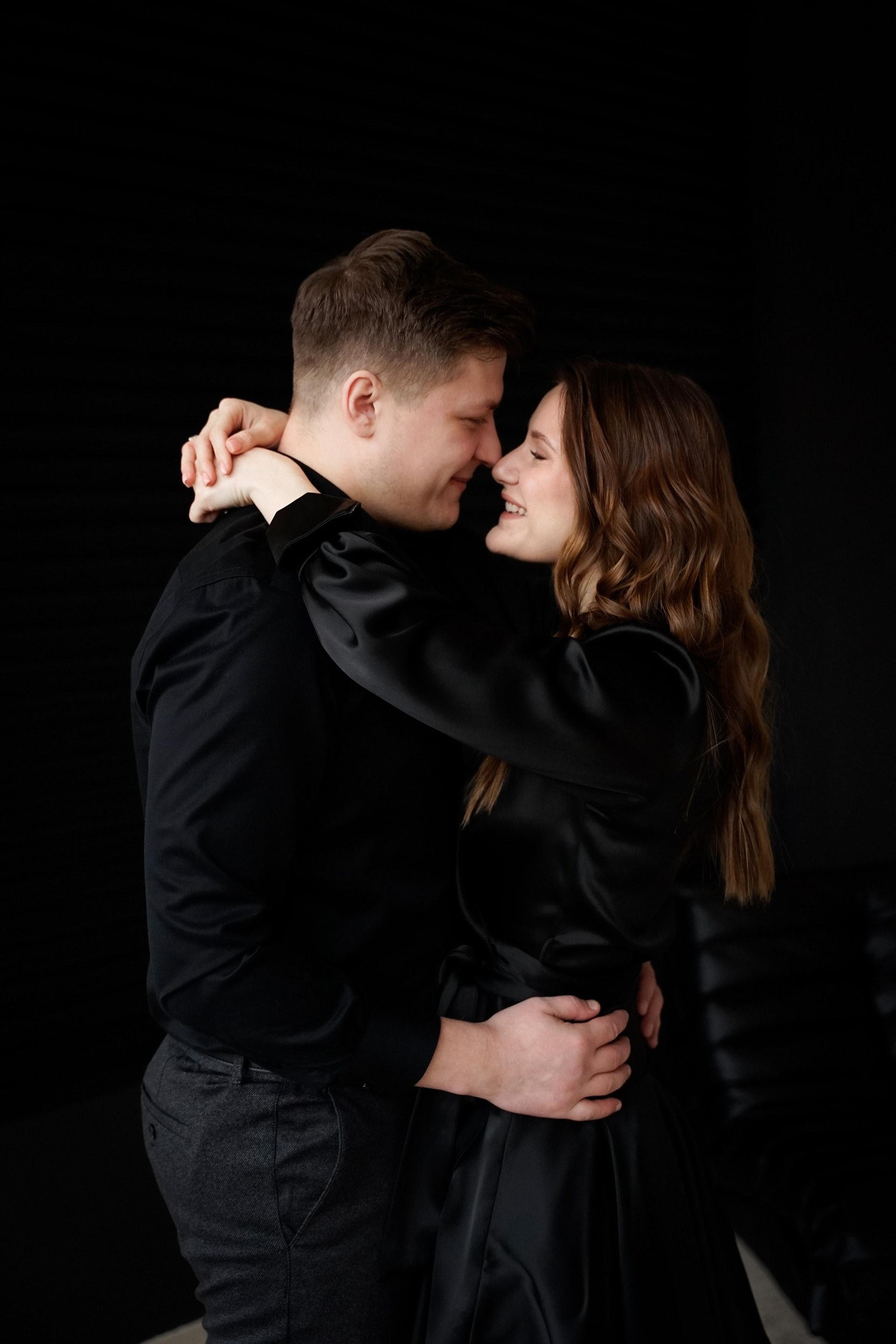 Фотосессия невесты и жениха в темной студии