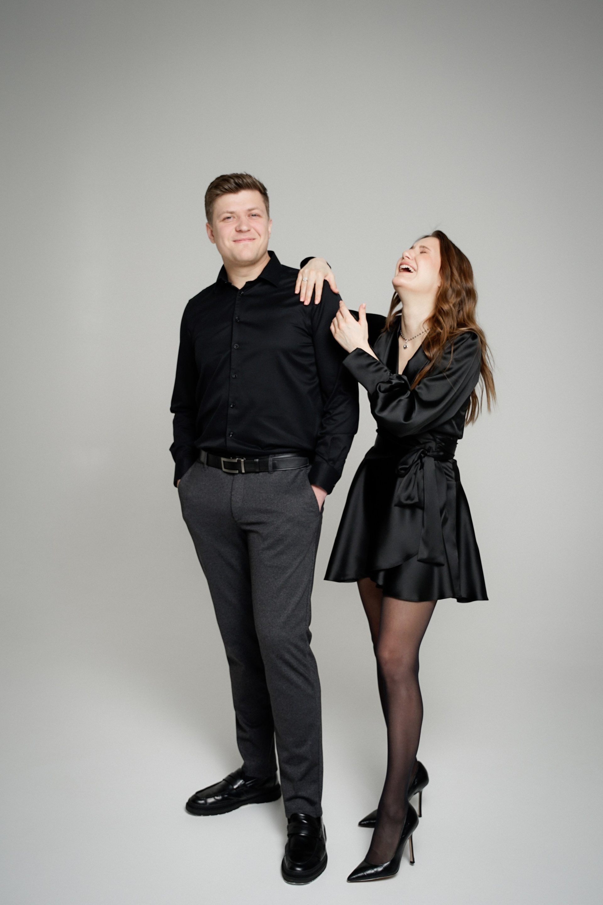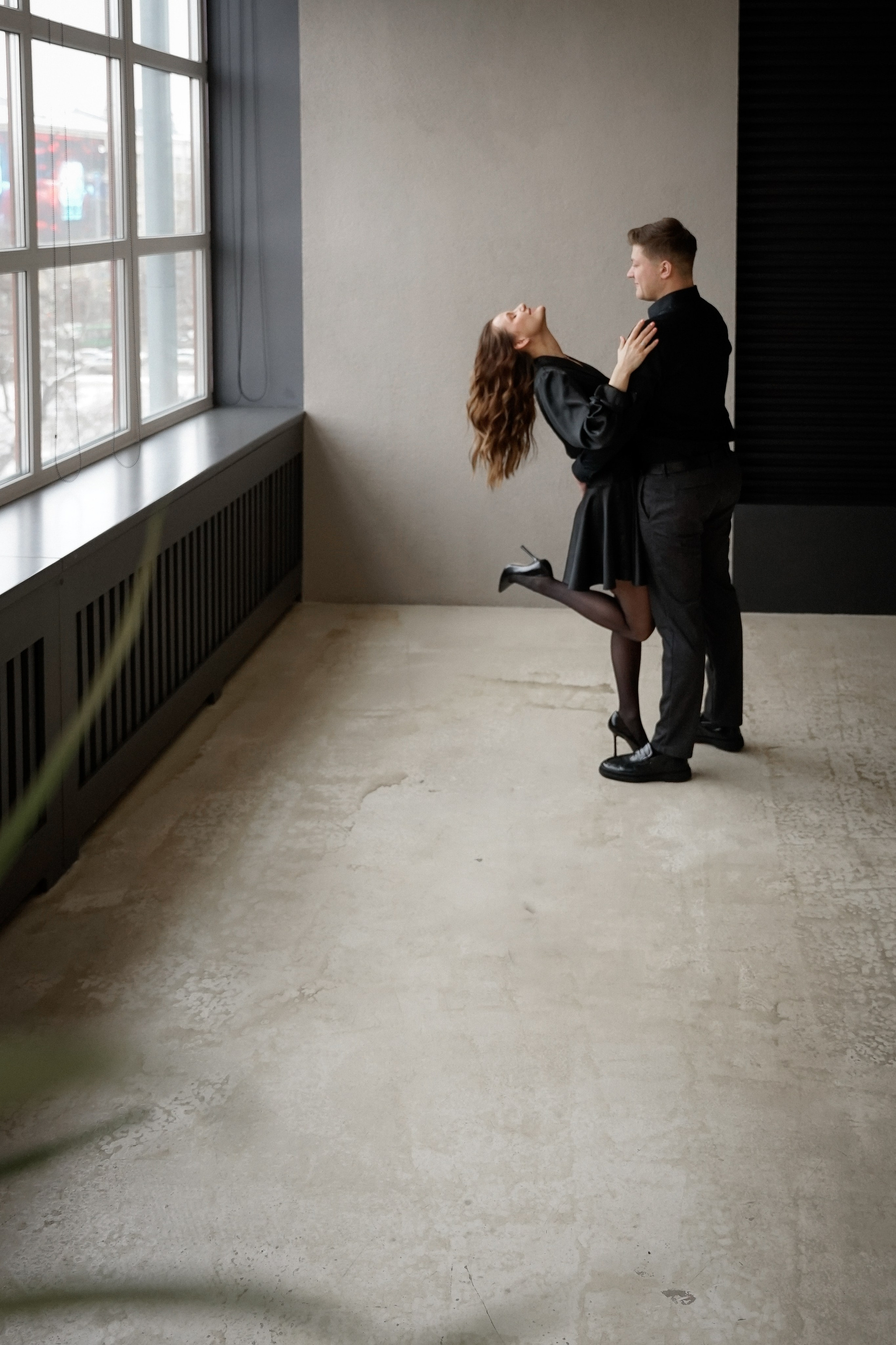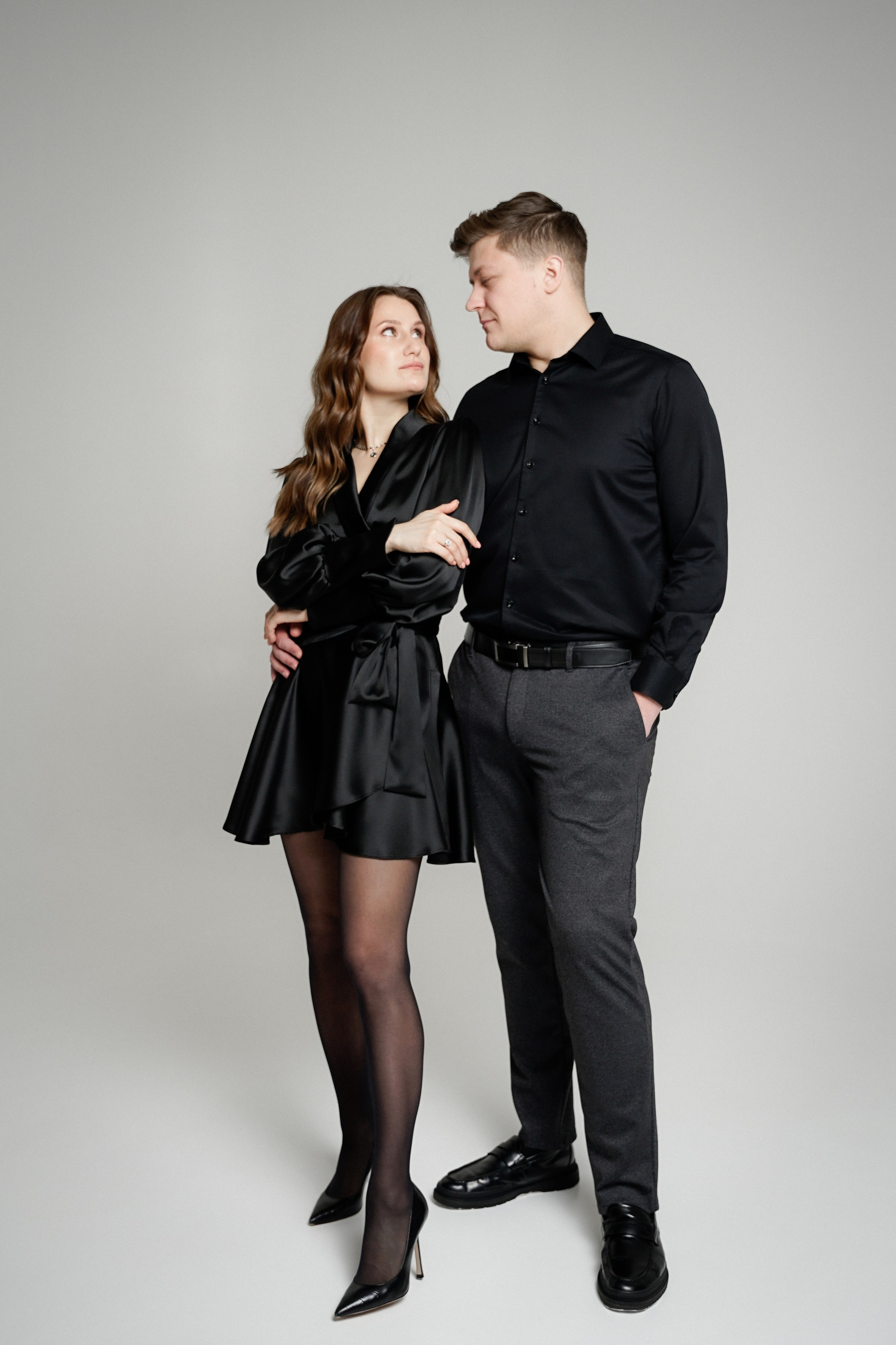 Фотосессия невесты и жениха в темной студии